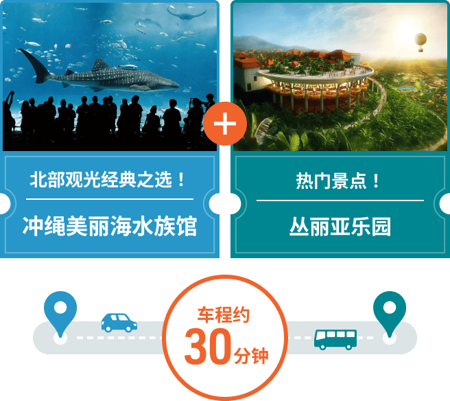 前往JUNGLIA OKINAWA(丛林亚乐园)与冲绳美丽海水族馆等热门景点,尽情畅游冲绳北部